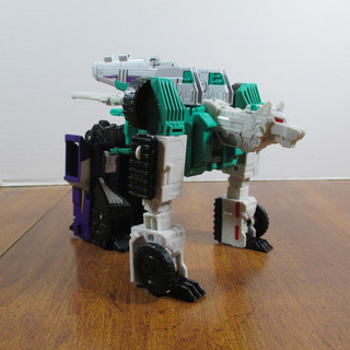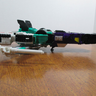 Moving on to Sixshot, I’ll echo what most have said about him in that he’s as close to a straight G1 update as we’re ever likely to see. While the die-hard fanboy in me wasn’t thrilled that Sixshot was going to be a headmaster, I was very happy with the fact that aside from his winged wolf mode, the Titan Master can remain plugged into the socket for the remaining 5 modes…thus, Sixshot doesn’t have to be a headmaster if you don’t want him to be. Once you learn the modes, it’s pretty easy to flip from one mode to another to another with a good flow which is always appreciated. Each mode is instantly recognizable as its G1 counterpart, which is an added nostalgia high. [Screw you Hasbro, we KNOW that's not a "submarine" mode. - Ed.] The last thing that I absolutely have to give a standing ovation…the significant lack of hollow plastic syndrome which has plagued a fair amount of Leader class Transformers up to this point.