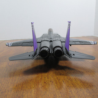 Let’s start off with the old fart, Skywarp. The version we’re looking at here is the WalMart exclusive from 2009 and, like Wally’s exclusive prior to that…2007’s Masterpiece Starscream…Skywarp is based on the MP-03 Seeker mold. The controversy surrounding this mold is that it made compromises to the robot mode in order to facilitate a very realistic jet mode. This is most notable in the ‘skirt’ formed by 2/3 of the fuselage. How much of an issue this truly is depends on the individual. While it does interfere with hip articulation to a degree, personally, I really can’t say it’s a deal-breaker. One thing that gets really close to that level though is how the feet are designed…with the jet’s engines serving as the heels of the robot. Without very careful posing…and making damn sure you don’t hit the table or platform you have him posing on…there are going to be some serious stability issues. Thankfully, releases of this mold (both in Japan and in the US) each came with a flight stand/base that eliminates this issue and frees up the figure for more dynamic posing. Still, a lot of aspects of this mold have been carried over to subsequent versions [Perhaps a little too much, but we’ll get to that. – Ed.] and for good reason, it’s a pretty decent transformation scheme overall.