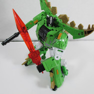 Upon learning that they’d combine…well…I was definitely in the ‘wait-and-see’ camp. Sure, there’d been attempts before, whether in not-so-official fiction or by way of third party creators…and most of these efforts didn’t particularly sell me. But at the same time…I could see it. After all, the Dinobots were usually relegated as the Autobots’ response to Devastator, G1’s first combiner. Or…with no real Autobot response to the Predacons and their gestalt, Predaking, well…there was another instance where a Dino combiner could fit the bill. So I was certainly open to it…especially knowing that a Power of the Primes Predaking was ALSO in the works. [We’ll get to him. – Ed.]