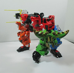 As I said in the beginning, I’ve always had mixed feelings about the Dinobots combining. I’ve always been comfortable in my stance of “they don’t HAVE to combine”, but having a giant Dino-superbot would kick ass if done right. And while one would hope that Hasbro would’ve been able to pull that off…well…Volcanicus just doesn’t do it. It’s not that he’s bad…not at all…the way the separate dinos become limbs looks pretty decent. Sure, the feet are a weak link…but that’s a standard combiner quibble. No, where Volcanicus fails, and I alluded to this with Grimlock, is the torso. The head mold is cool and I love the nod to the old Marvel comics with the crown…and as you go down into the upper torso, again, this gives the illusion of a mighty warrior…who has a panty waist. And then there’s the hips and upper legs…which are just kinda…there. They’re Grimlock’s legs twisted to the side…the same mechanic used for Menasor and Optimus Maximus…and this configuration JUST. DOESN’T. WORK. It didn’t for the earlier combiners and it still doesn’t here. I was forgiving when it came to those earlier combiners because it was early in Combiner Wars and you’re bound to run into something that doesn’t work…not for lack of trying. But to repeat that mistake here? Post Combiner Wars and post Titans Return? That shows either a lack of caring or sheer laziness. Neither of which are excusable. Lastly, to go back to what I opened this paragraph with…with combiners being in the limelight, either of the groups I figure the Dinobots would have rivalries with, the Constructicons or the Predacons, received Titan Class combiners...meaning each component was a voyager-sized robot that combined into an 18-inch super-robot. Volcanicus, which if you think about it, should be that massive gets the standard 4 deluxes and a voyager. While I understand the limitations of the market with regards to big-box items…especially now that Toys R Us is gone…I seriously cannot think of anyone, adult or child, that would turn down a big box of big dinosaur toys…that just happen to turn into robots. I mean, come on…especially given the resurgence of Jurassic Park movies these days? Or the inclusion of the Dinobots in the last two Michael Bay films? Feels like there was money to be had there and Hasbro just said ‘no thanks’.