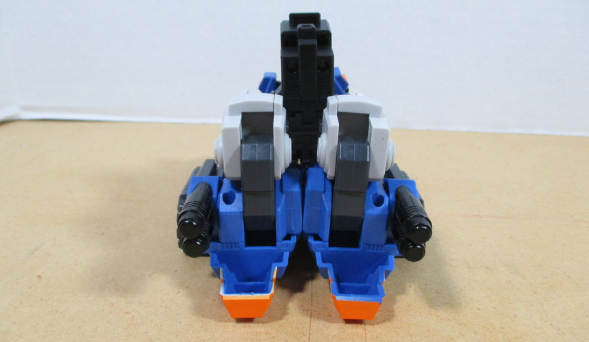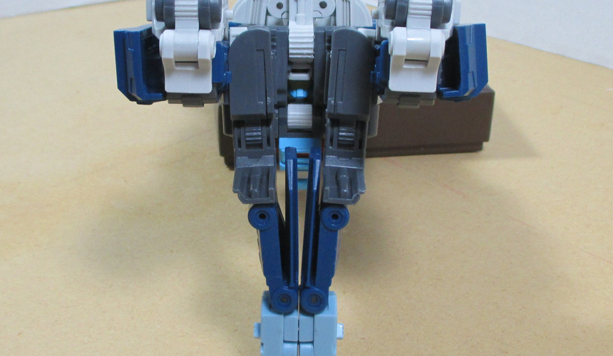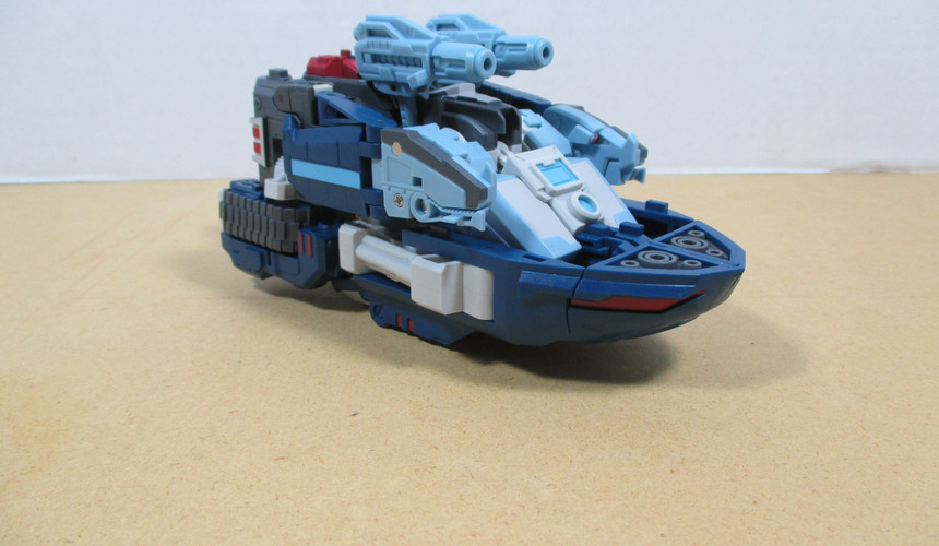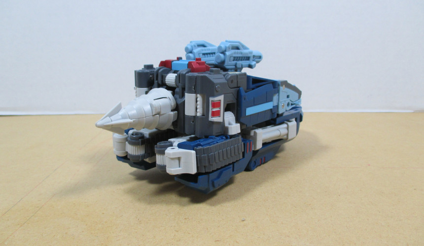 Lastly we have the “boat because we tell you it’s a boat” mode. And yeah, I’m probably being a little bit harsh in phrasing it like that, but when you’re coming off that drill-tank mode, you need a strong finish and this, while certainly okay…I mean, it’s compact and there’s not a lot of kibble aside from the drill hanging off the back…and there’s even a hull, it really does feel meh. I mean, say what you will about the wolf-ish mode, it felt like a good idea that overreached what it was capable of. This boat just feels like a ‘safe choice’. Which, I mean, makes sense since G1 Quickswitch had his ‘hovercraft’ mode, so there’s a reason for it to be there…and, it’s fine, it really is…but I dunno. I just get this ‘meh’ vibe from it.