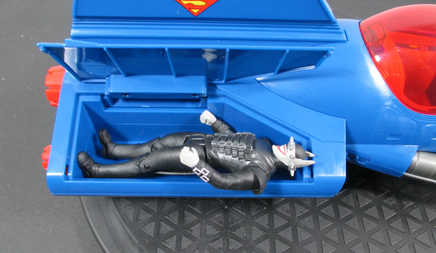 Adding to this fun factor are the vehicles. Being able to pop Batman and Superman into their respective Wings and Mobiles takes recapturing that nostalgic play a whole other step forward. While not as large as the 1989 ToyBiz Batwing, it does copy the general shape and even the trigger activated front grabbers. McFarlane made an excellent decision in making the Batwing nearly the exact shade of blue that all of Batman’s vehicles in the original line had, carrying that uniform look forward into this new line. With this in mind, I’m very excited to see what design they go with for an updated Batmobile…and mind you, this coming from someone with a chronic case of Bat-Fatigue! While not identical to the vehicle that shares its name from the original Kenner line, McFarlane’s Supermobile actually draws inspiration from the very original vehicle that was introduced simultaneously in the comics and in toy form from Corgi. [With spring-loaded fists that would hurt if you ever hit anyone, or yourself, with them. I decline to comment on how many times this may or may not have happened in my youth. – Ed.] Opting to avoid that potentially painful spring-loaded direction, this current Supermobile has a knob on its underside that you can rotate back and forth, resulting in a one-two, one-two punching action from the fists. I’m not going to say it can keep you mesmerized for hours but you’re definitely going to find yourself going “Pow! Pow! Pow!” anywhere from 6 to 10 times…at least.